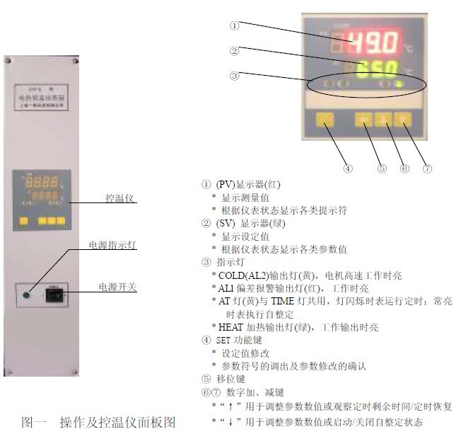 2.1 產(chǎn)品操作面板及控溫儀面板布置(見(jiàn)圖一);