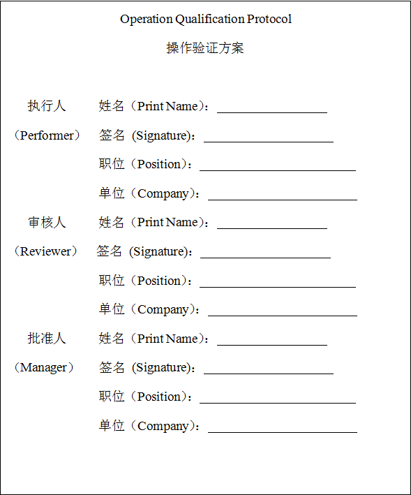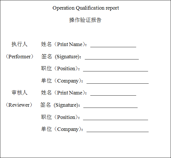 本次操作驗(yàn)證(Operation Qualification)文件填寫目的是為了規(guī)范